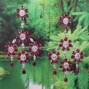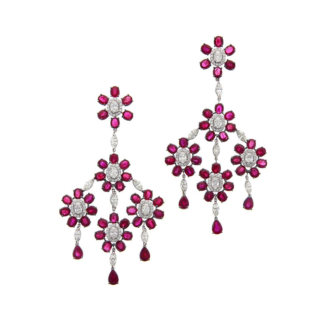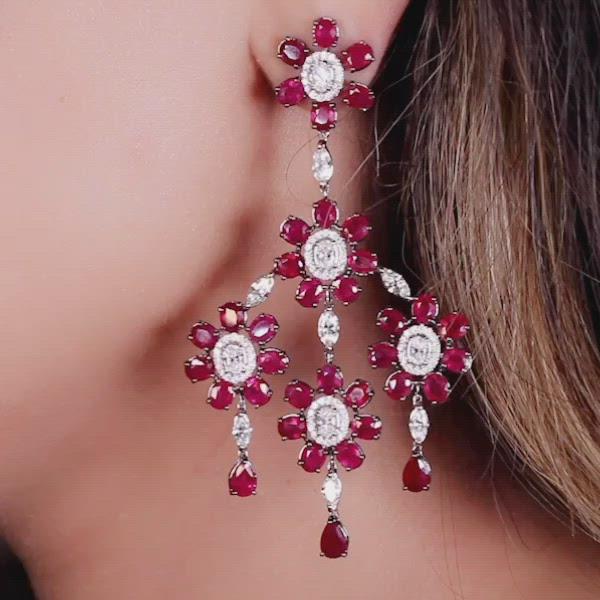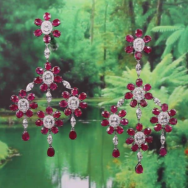 Ruby & Diamond Earrings Handcrafted in Hong Kong with 18K White Gold with Black Gold Antique Polish