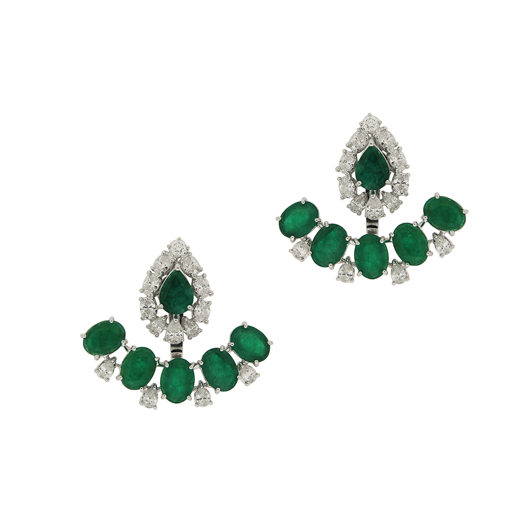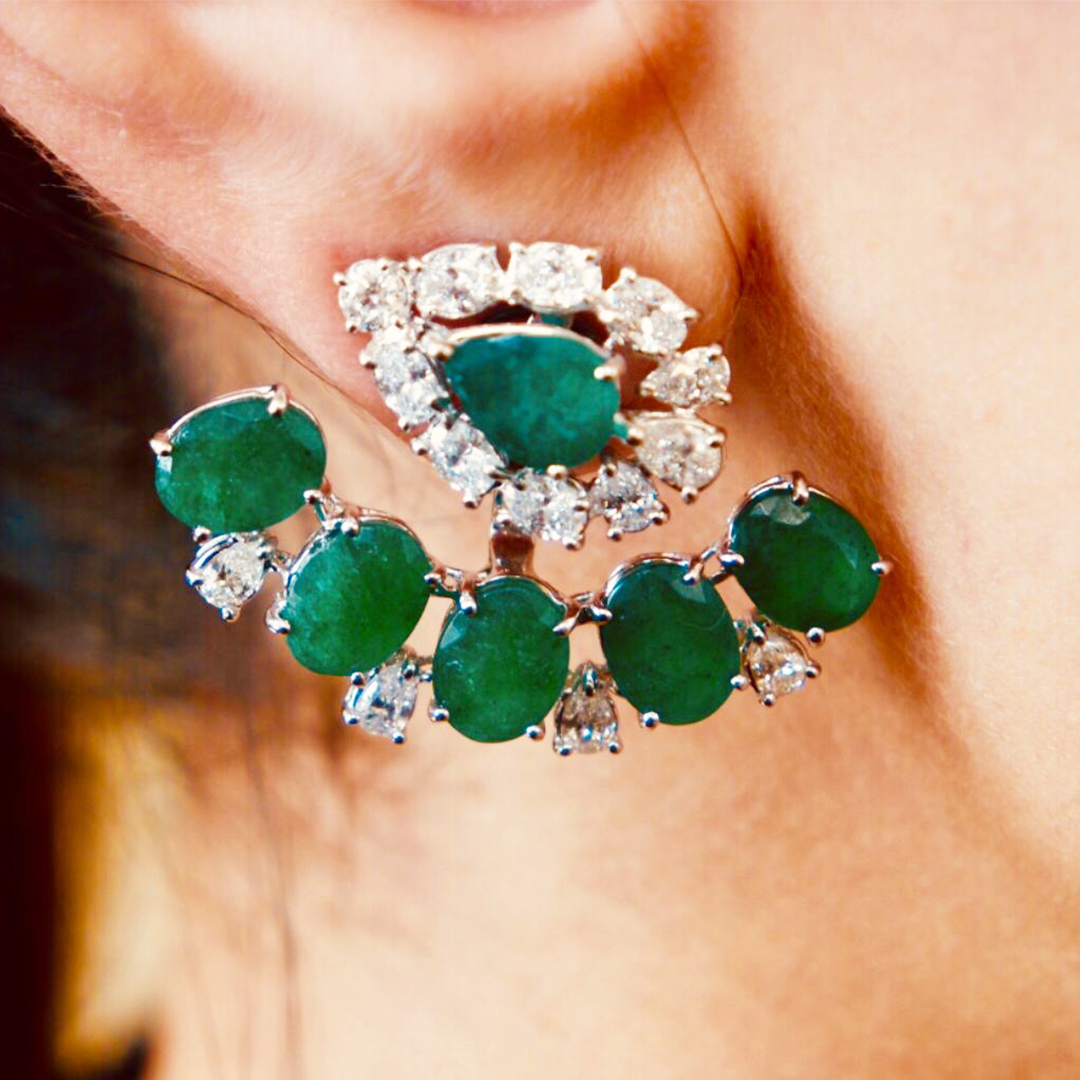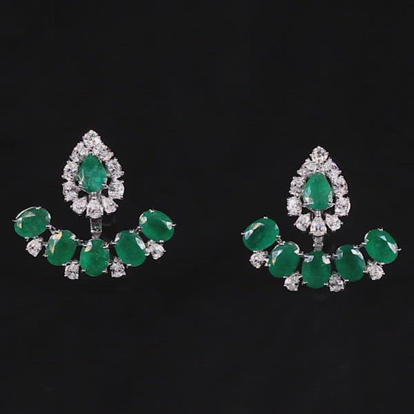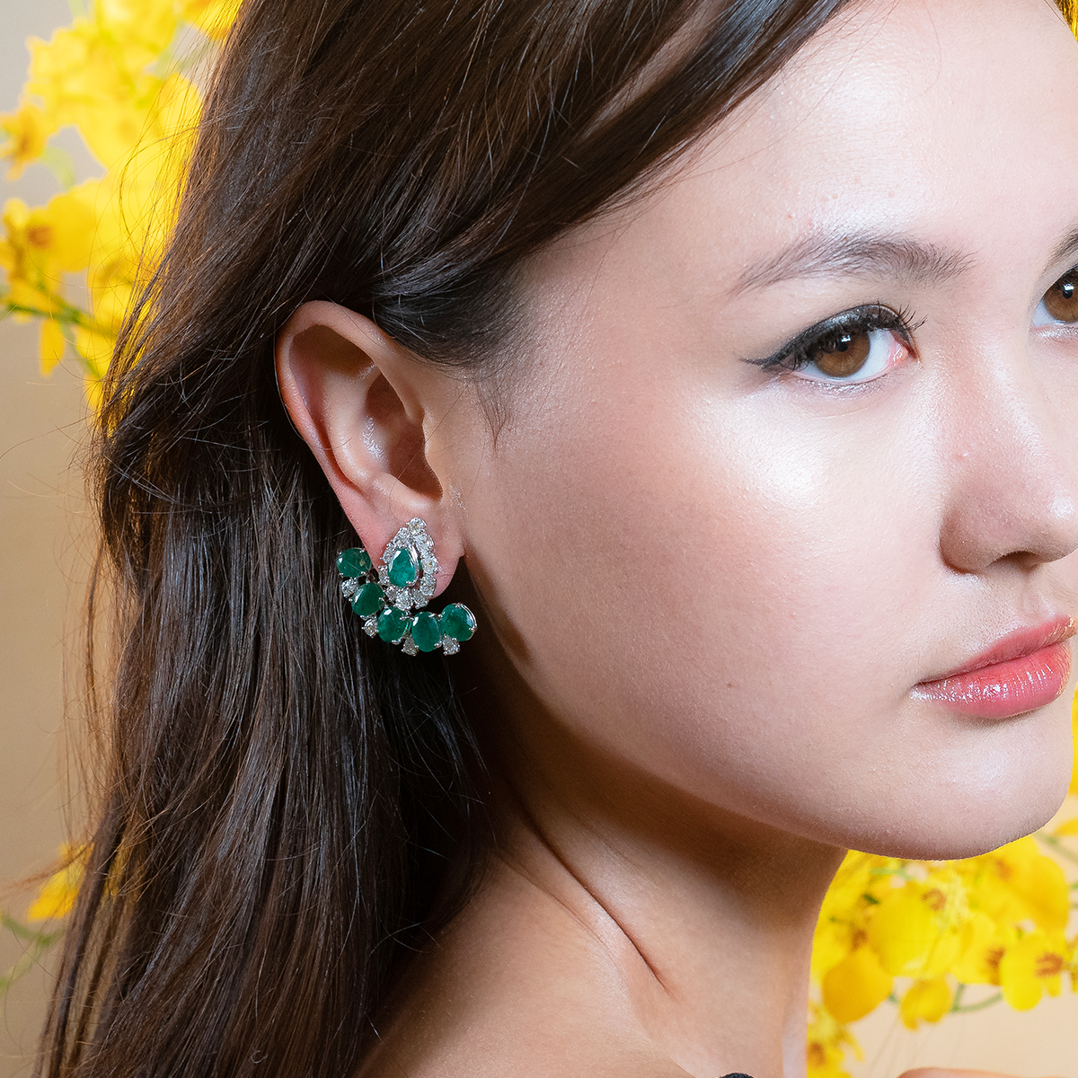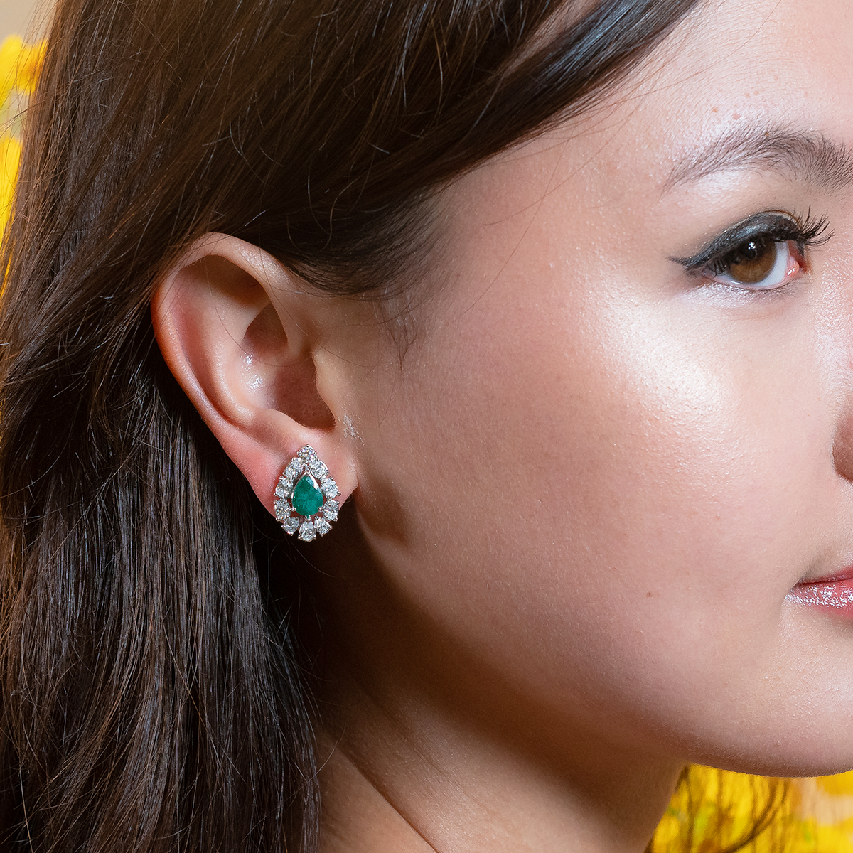 Emerald & Diamond Earrings Handcrafted in Hong Kong with 18K White Gold