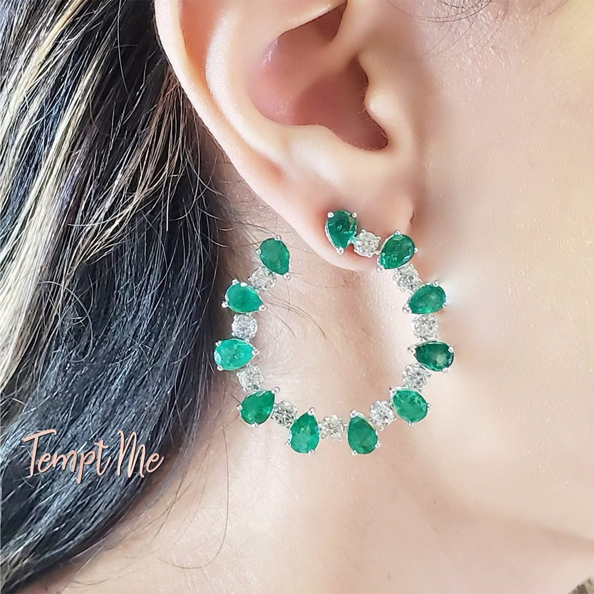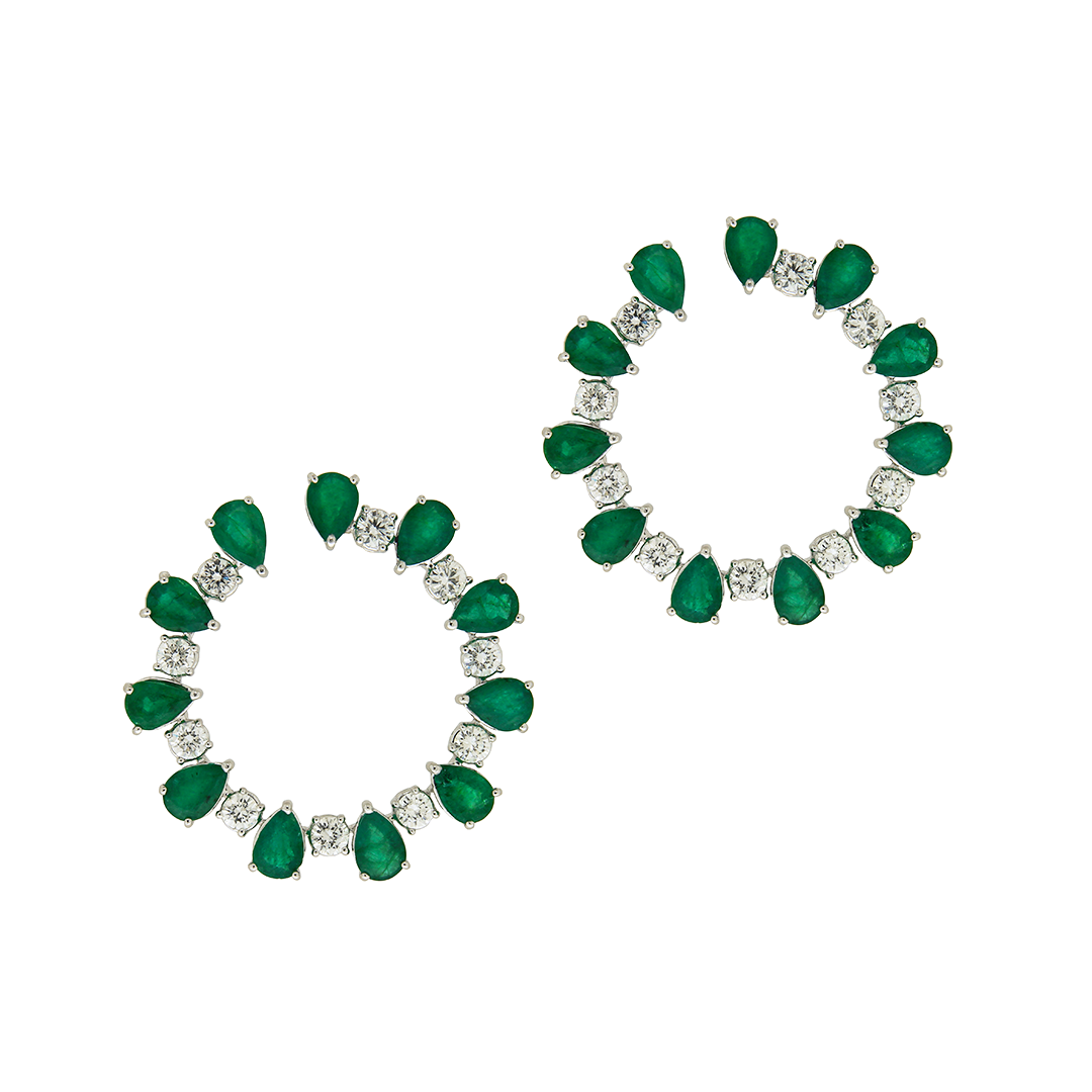 Emerald & Diamond Earrings Handcrafted in Hong Kong with 18K White Gold