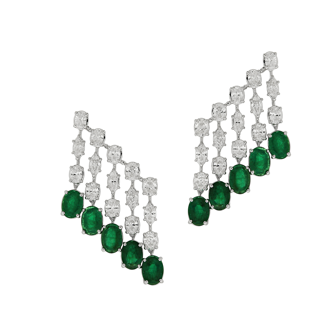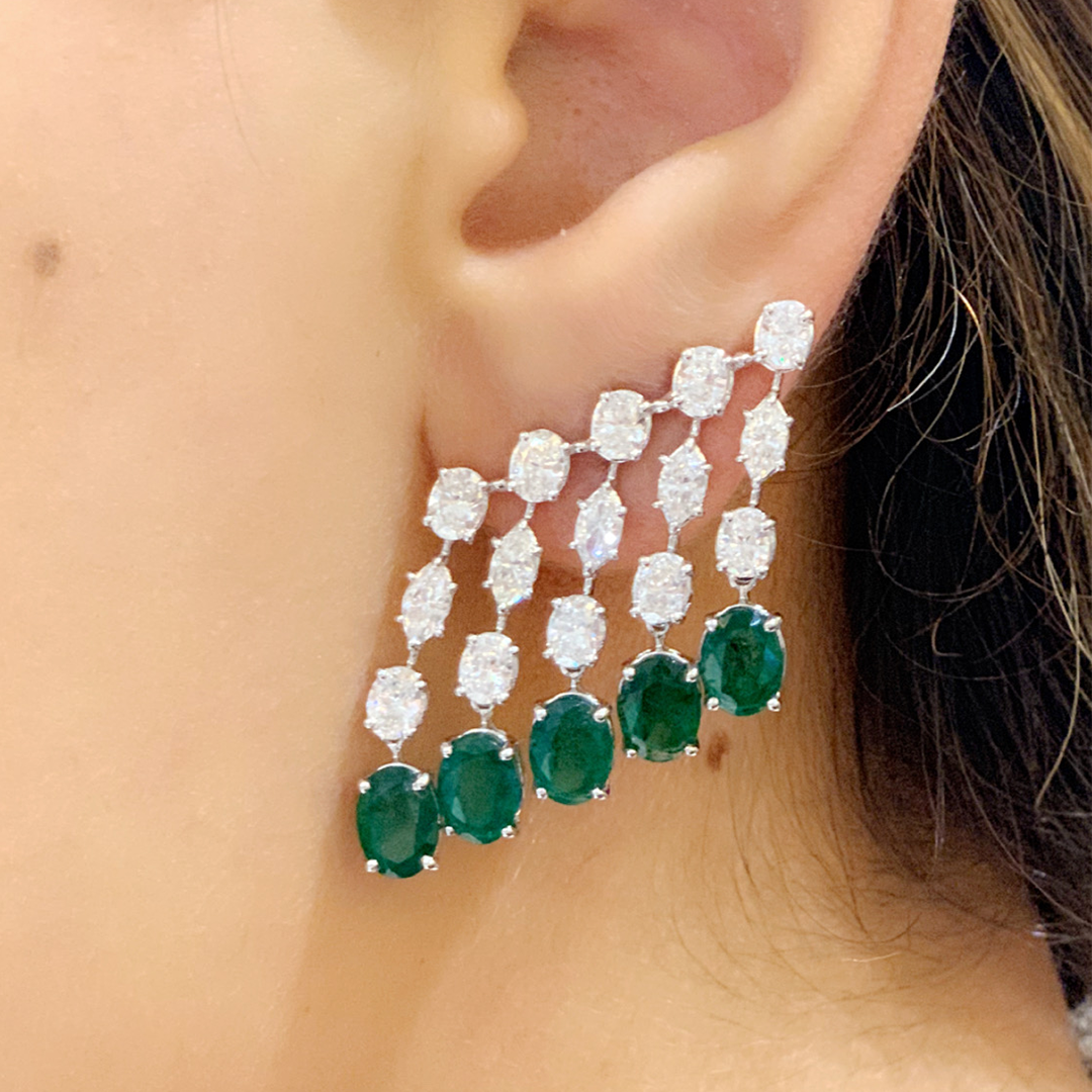 Emerald & Diamond Earrings Handcrafted in Hong Kong with 18K White Gold