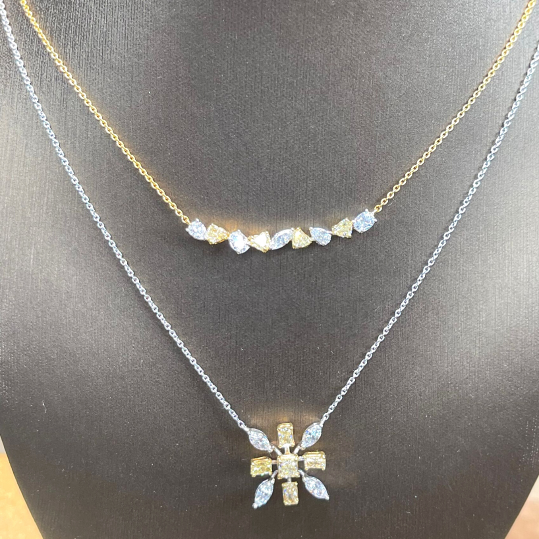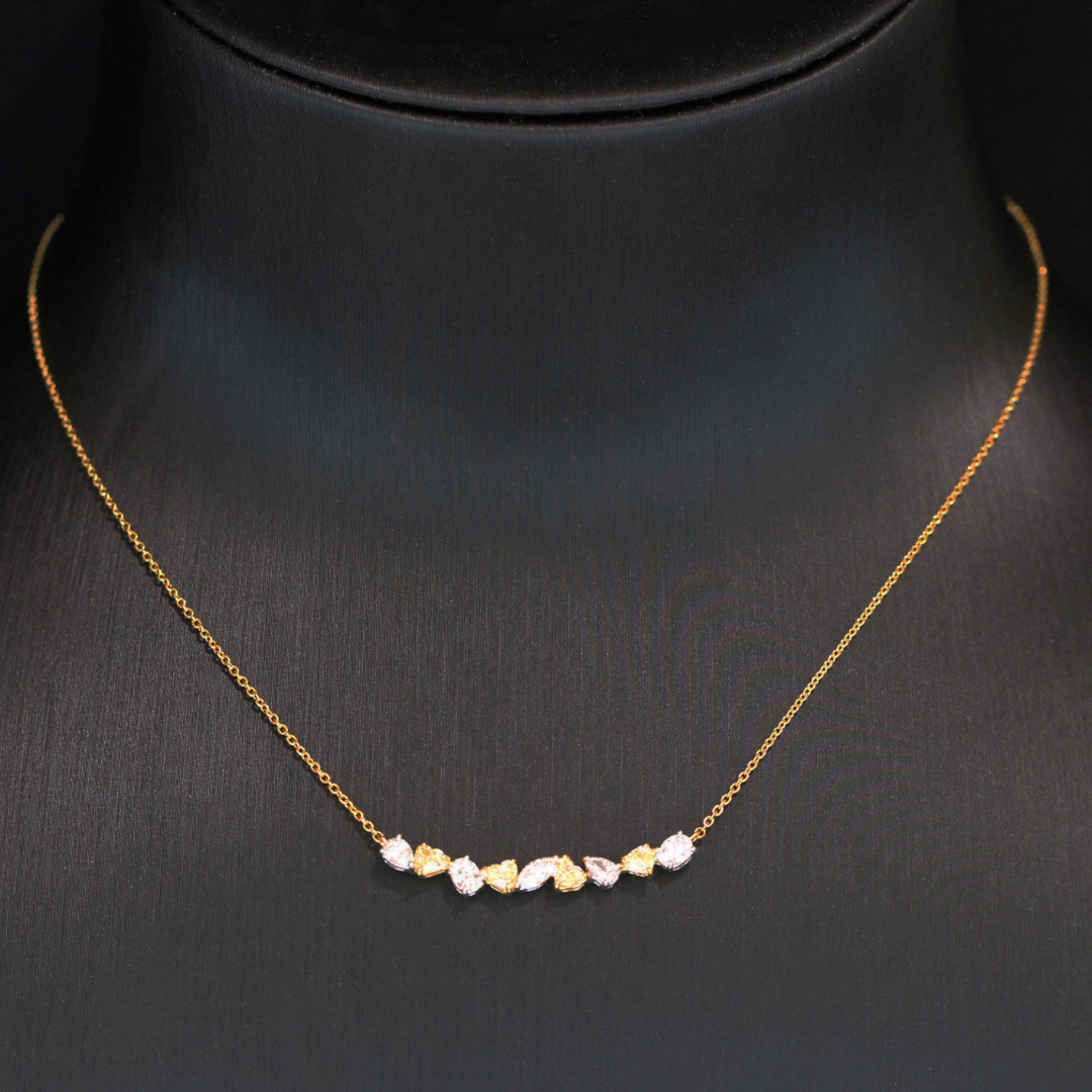 Diamond Pendent with Attached Adjustable Chain Handcrafted in Hong Kong with 18k White Gold and 18K Yellow Gold