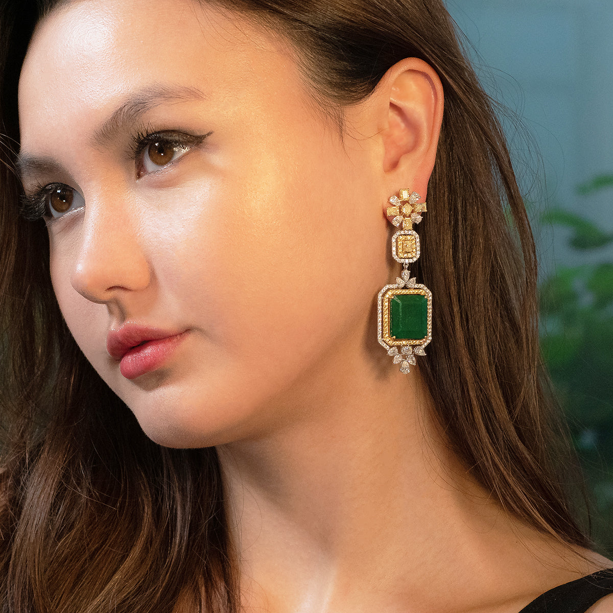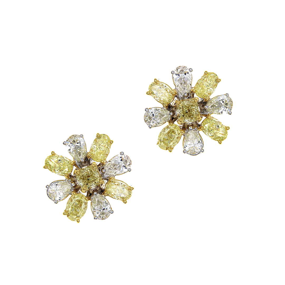 Diamond Earrings Handcrafted in Hong Kong with 18K White Gold and 18K Yellow Gold
